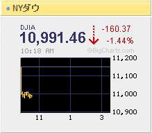 あれぇ~ダウもナスもキュウリもヘロヘロの暴落すね。でトホホ。
