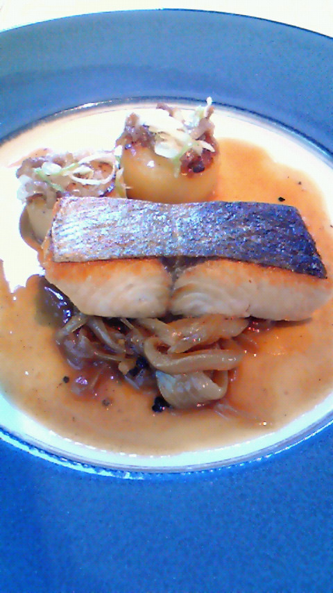 桜鱒です。メニューで見たときは、どんな感じになるのかと思っていたら、出てきたお料理は少しサーモンのような色合いに!