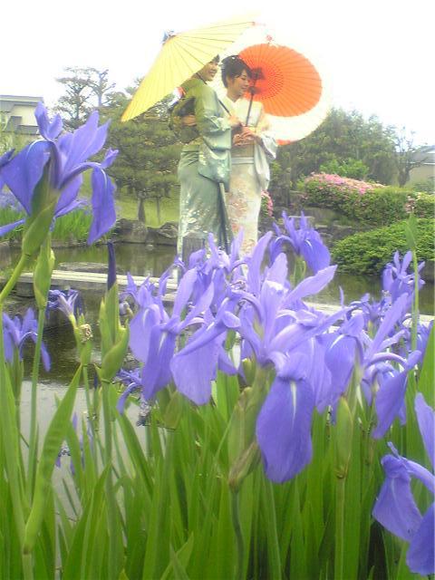 ミスかきつばた 知立市 八橋かきつばた園、 無量寿寺:あいにくの雨の中ミスカキツバタの撮影会があったようです。手前の人が二宮さんのようです。 無量寿寺の隣の市文化会館での撮影。順番待ちで撮影です、カキツバタは見ごろ、満開でした。お客さんもすごい人でした。在原業平さんもこれだけの人に毎年お参りされて幸せでしょう。 在原業平毎歳忌 5月23日(日)午前11時無量寿寺