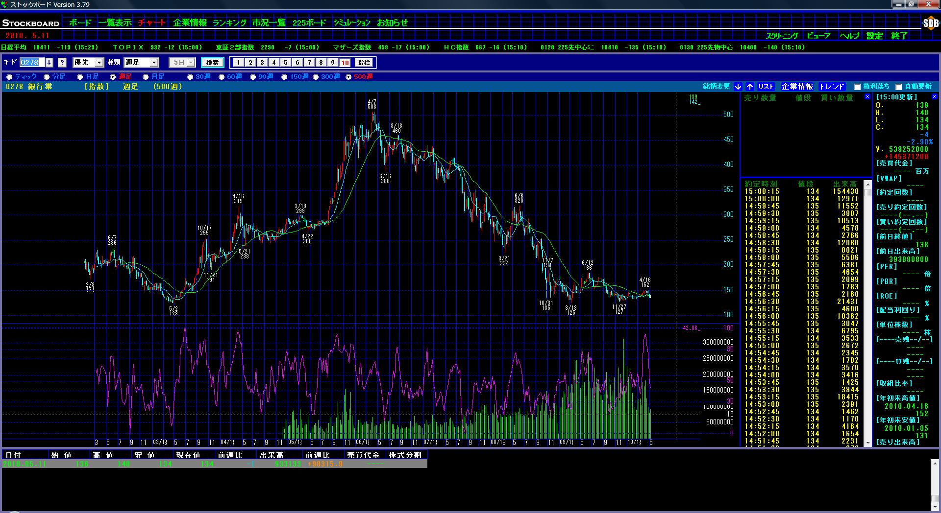 かなり厳しい下げに見舞われている銀行セクターの週足チャートです