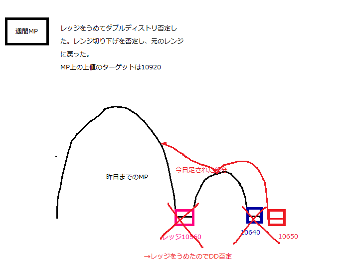 DDのレッジ10560をうめ、上方にあった10640もうめたので、MP上は強気サイン
