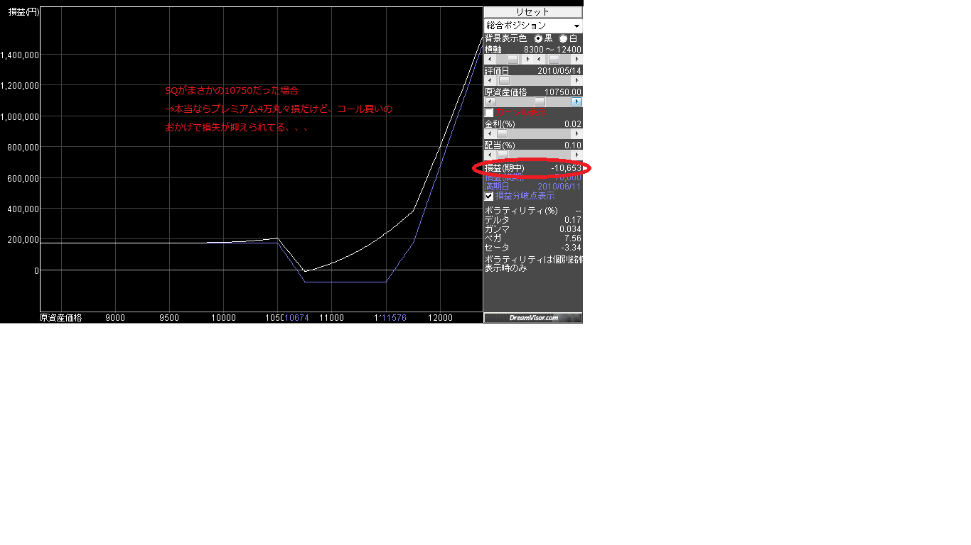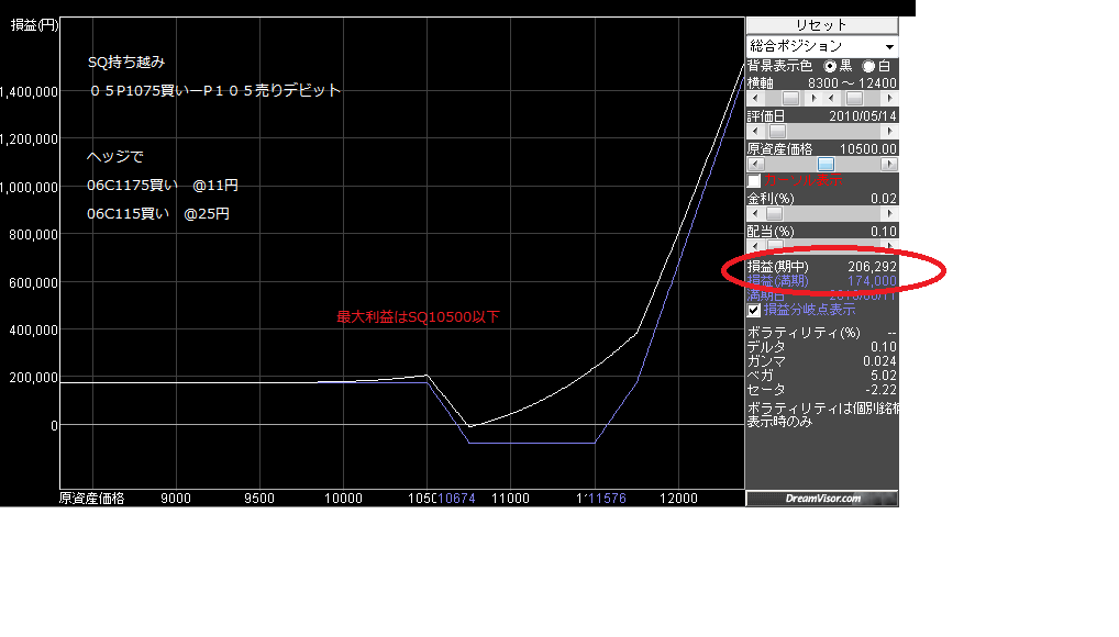 あたしは今回日経のチャートが崩れた4月に期先(05限)でデビットを組んだので、具現化するまでに1ヶ月以上かかりました。。。。。^^;