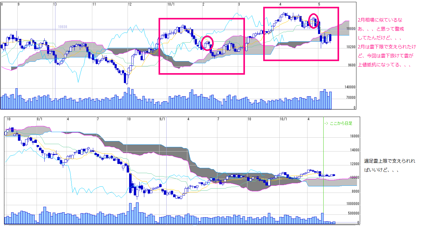 ・トレンドライン、ファンライン、一目基準線転換線とうの下値目処は各自チャートで確認して下さい。