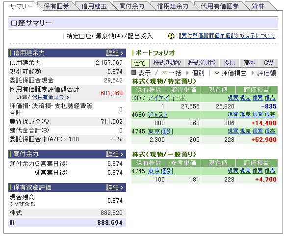 これで、買付け余力が5000円程度とナンピンも出来ない状態となって