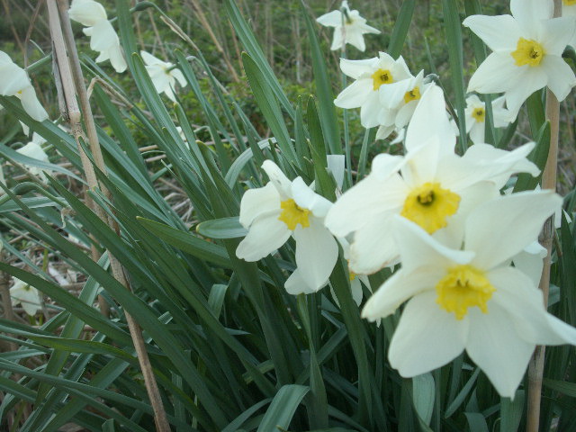 写真1:河川敷に咲く遅咲きの大型スイセン 毒があります