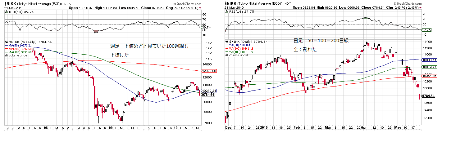 ・日足でみても週足でみても、トレンドライン割れとなり、去年3月からの上昇トレンドは終了した事になる(ドル建てでは一足お先に終了してる)