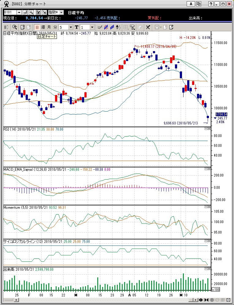 騰落レシオ25:68.58 (90.18) RSI14(日足):21近辺(41近辺) サイコロジカル12:25(42)