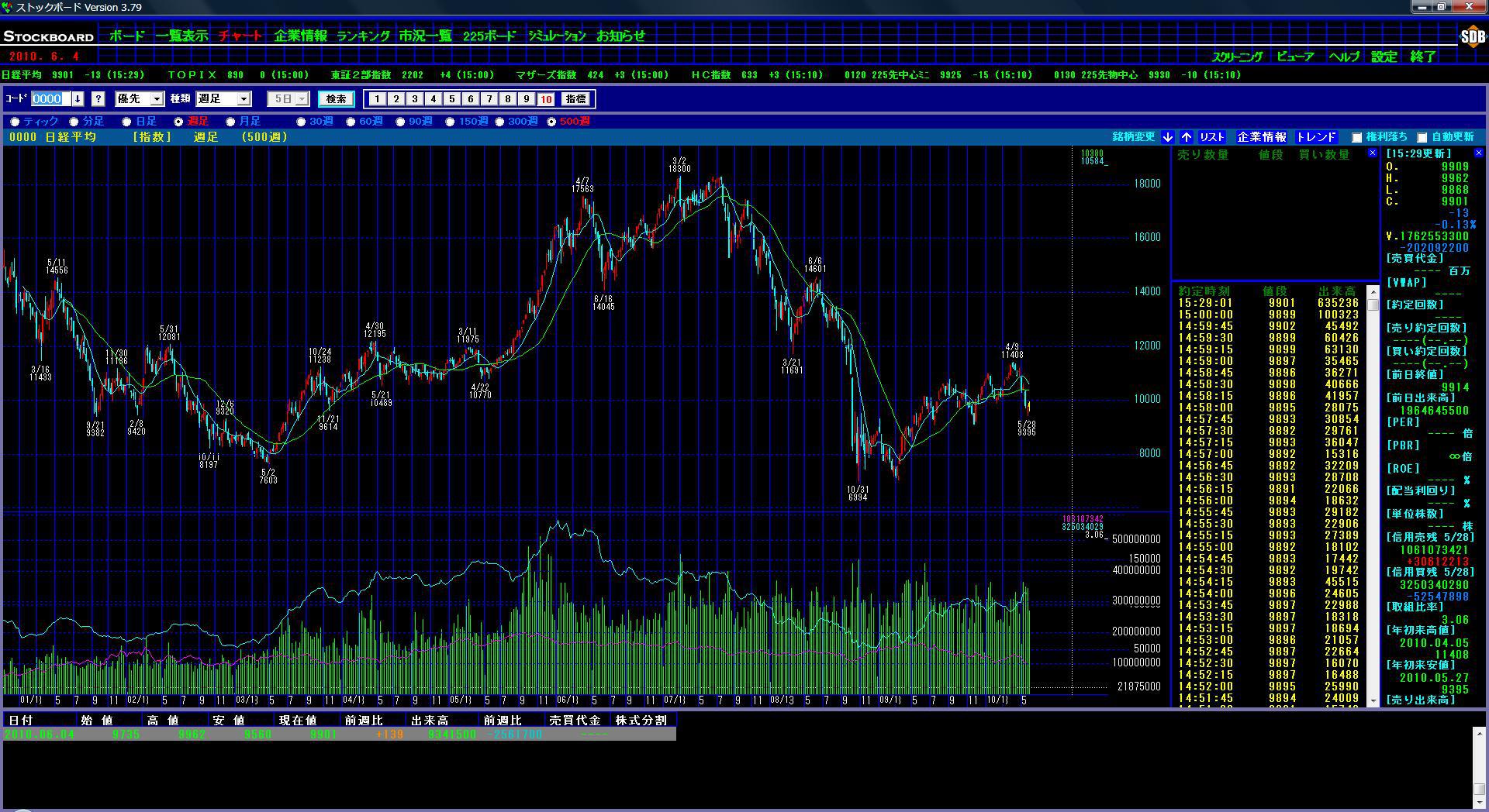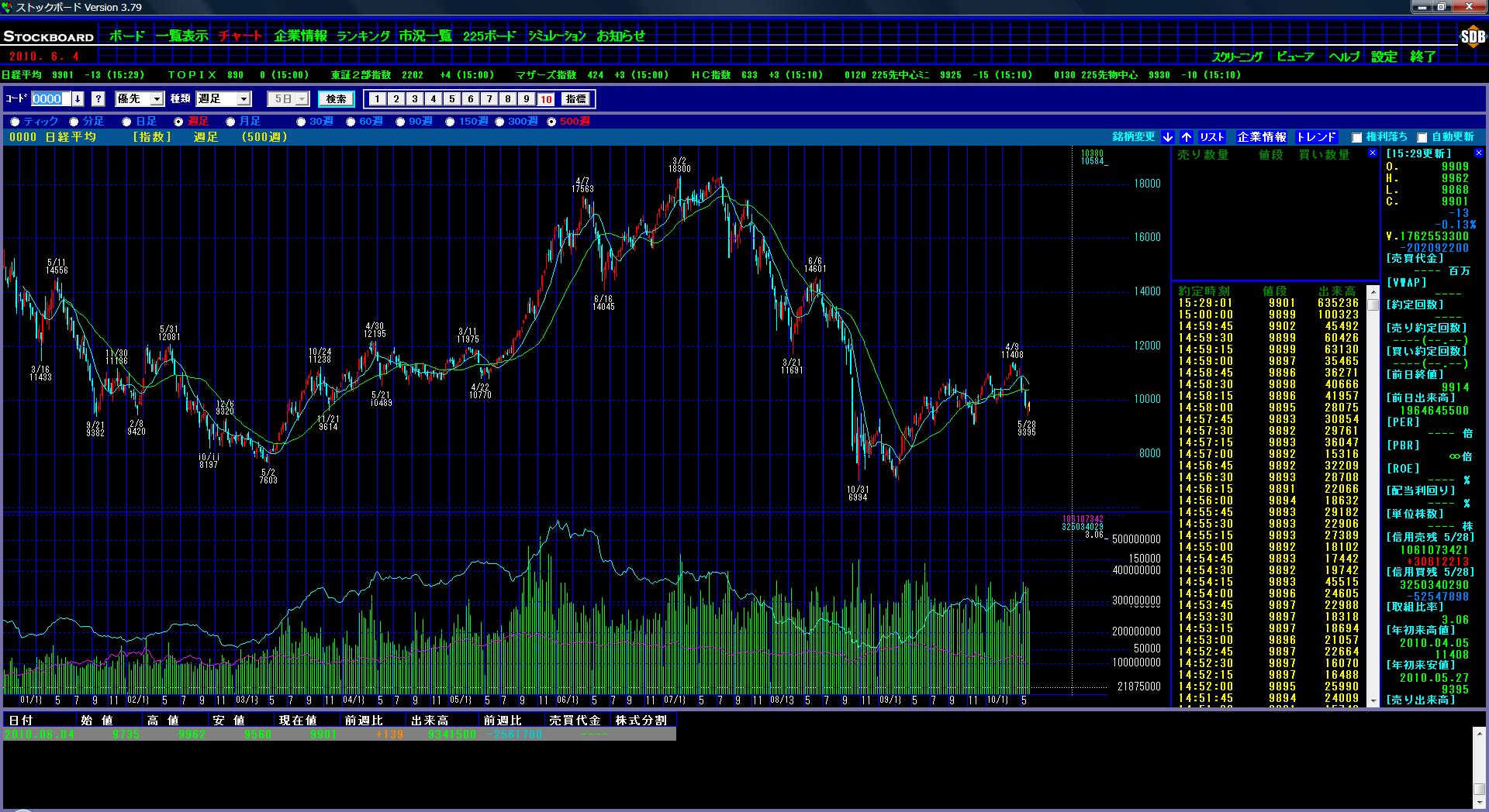 TOPIXはだせないので225の貸借倍率の変動をだしてみました。