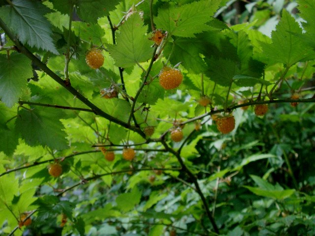 キイチゴは山道の縁に枝がせりだしてますから見つけるのも採るのもらくです