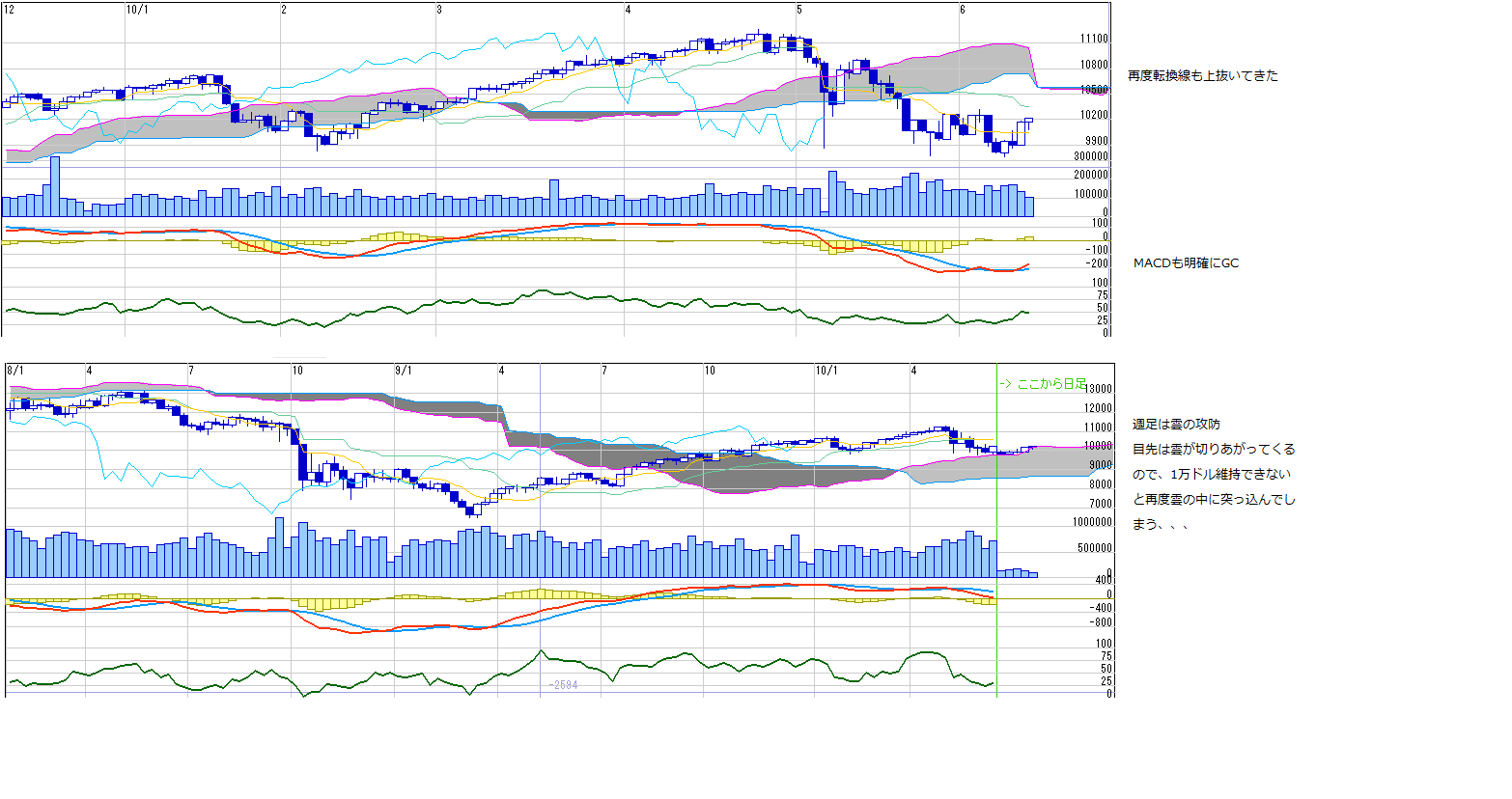 ただ、中期下落トレンドは変わらずなので、買ったら確実にリカクしないと、また買値まで下がりそうですが、、、