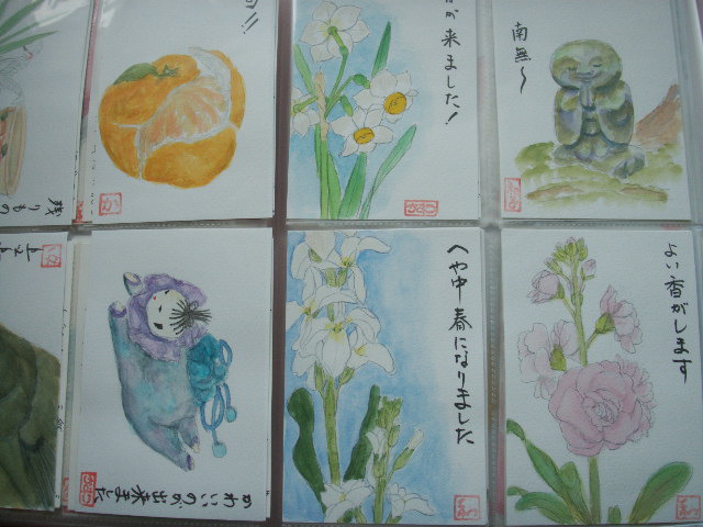 そのおばあちゃんは娘さんが描く絵手紙を大事にコレクションされてます