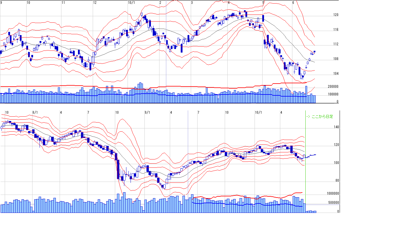 4月の最初にチャートが崩れたのもドル建て日経から、底入れしたのもドル建て日経から、ドル建て日経は先行指標となってる気がします。