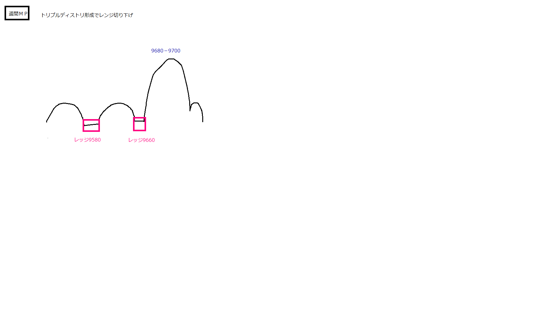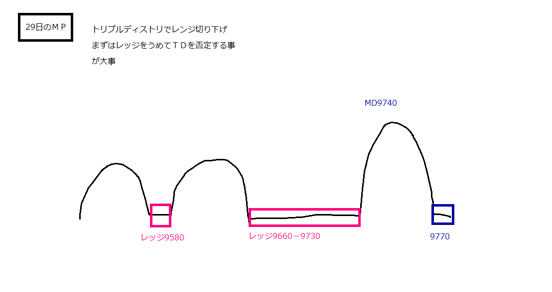 レッジ9650をうめてしまったので、下値は9370までみる必要がある、、、
