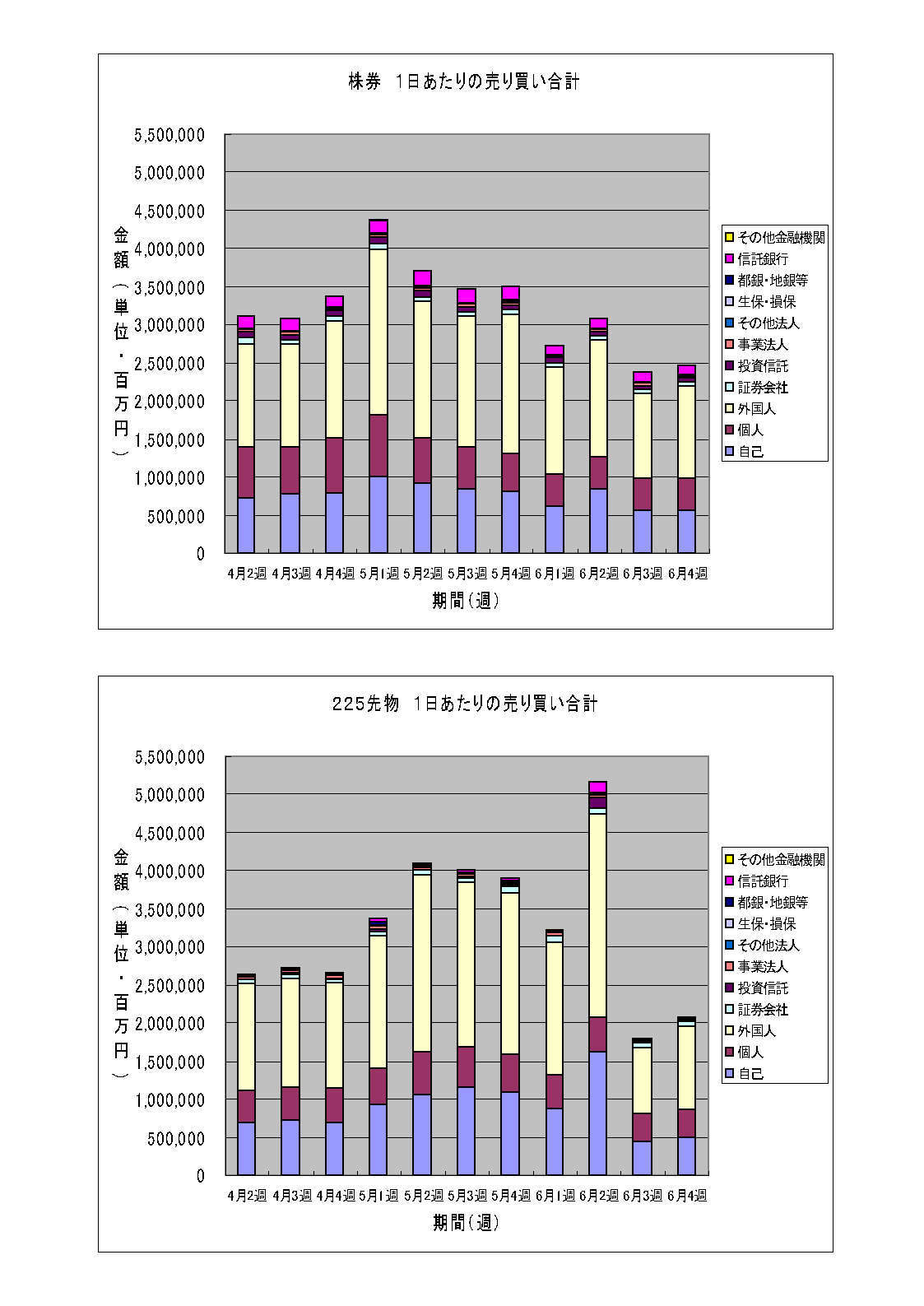 外国人の売買代金が増えて尚且つ、買い上がってくれれば言うことなしですが、海外マネーの流入が少ないからといって、必ずしも株価水準が下がらなければいけないというものでもないと思うのは虫が好い発想でしょうか?