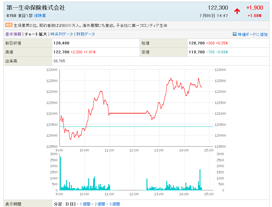 第一生命が潰れるんじゃないのですから、じっともってれば上がります