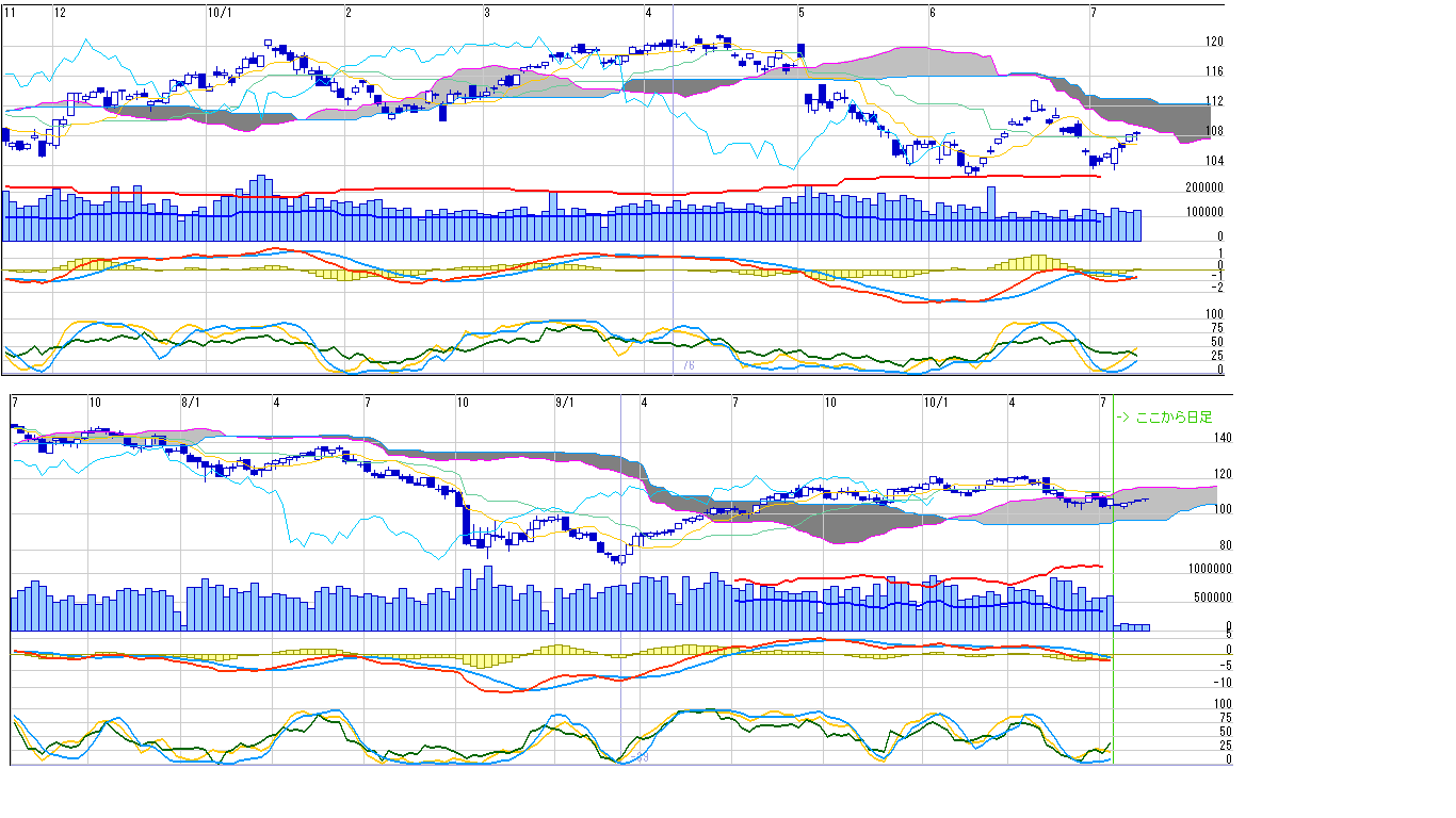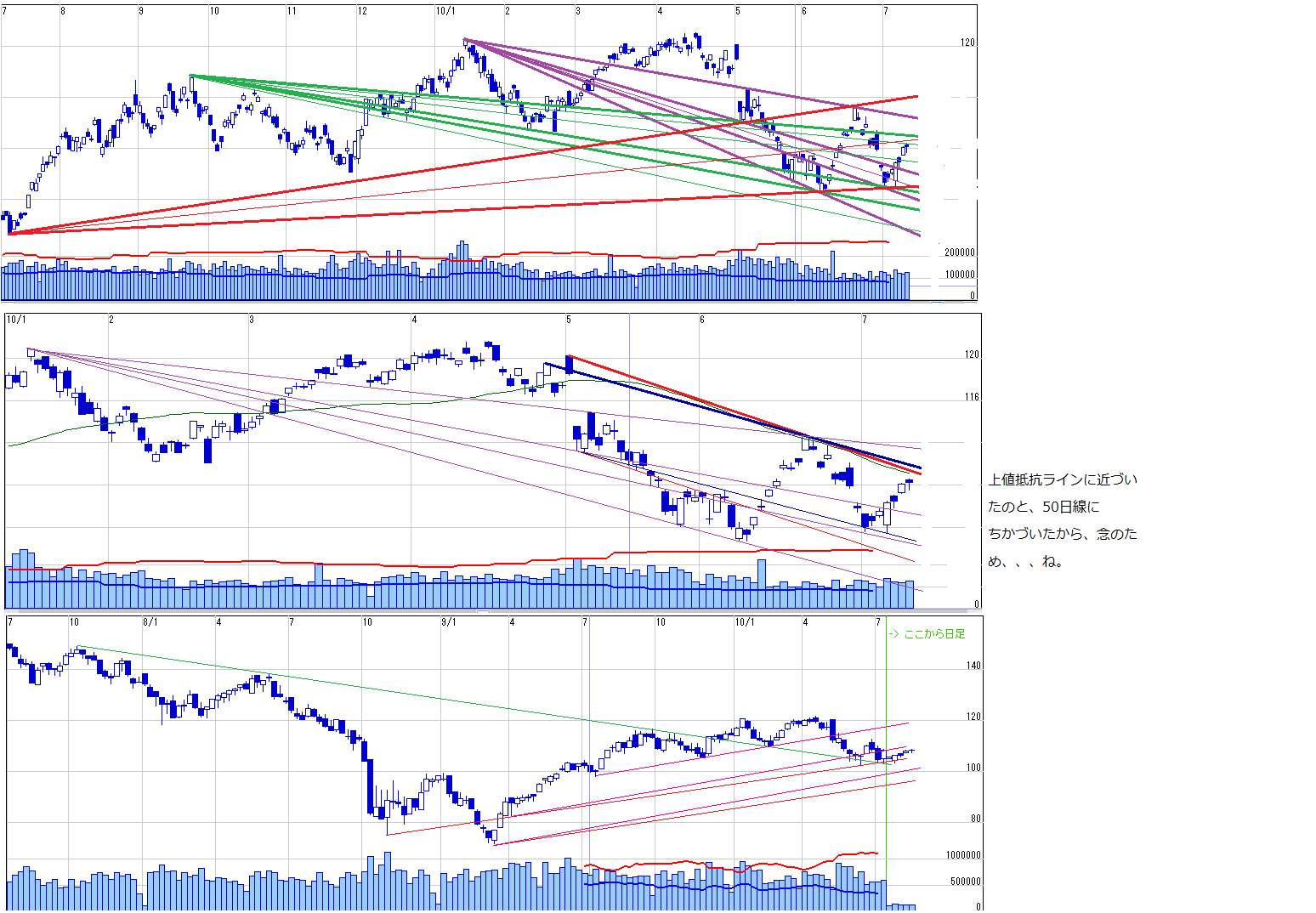 ・最近は円建てチャートで上値めどに達していなくても、ドル建て日経で達成感でれば下落、、、ということが多かったので、念のため。