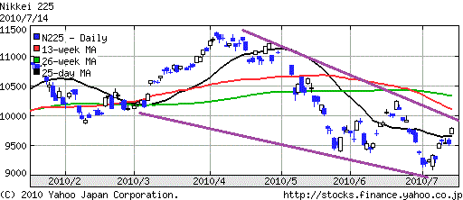 日経平均日足はトレンド上限付近に到達。どうやらいったん逃げるタイミングのようです。