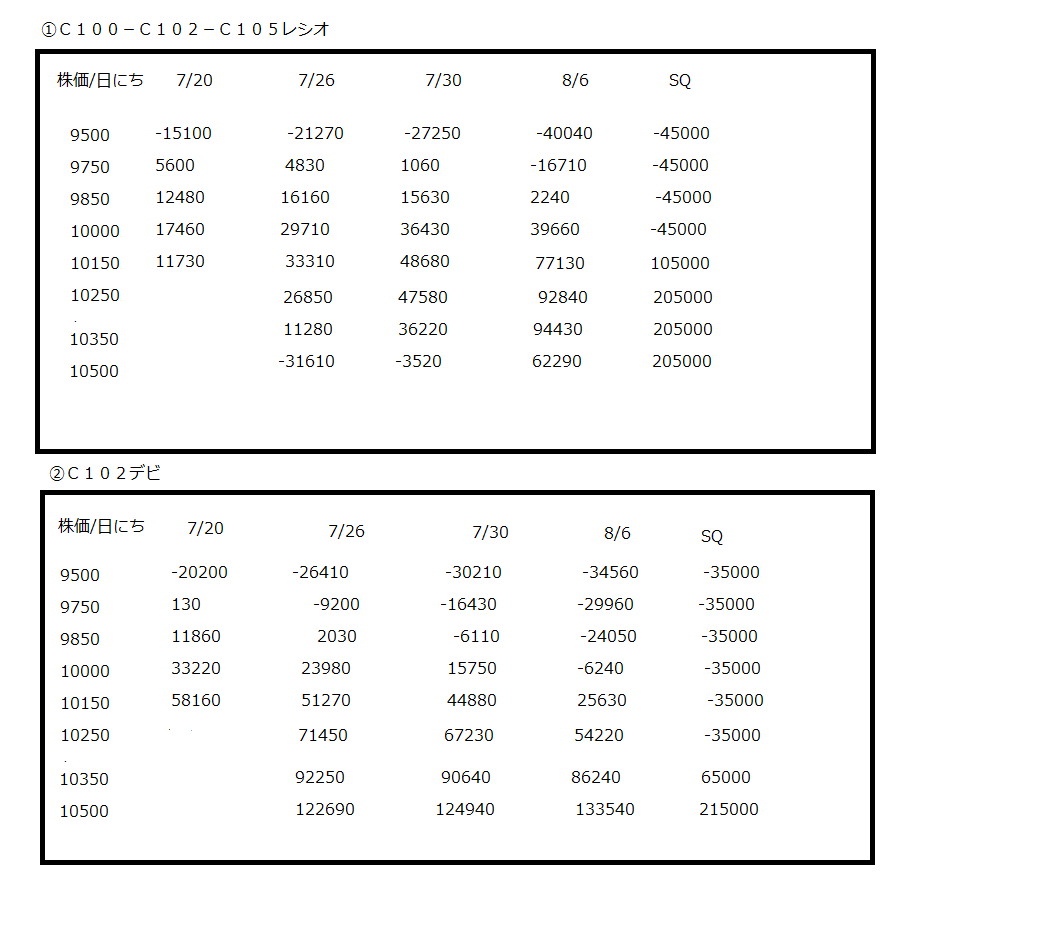 画像2 株価と日にちの推移でそれぞれ損益がどう推移するかをシュミレーションしてみました。