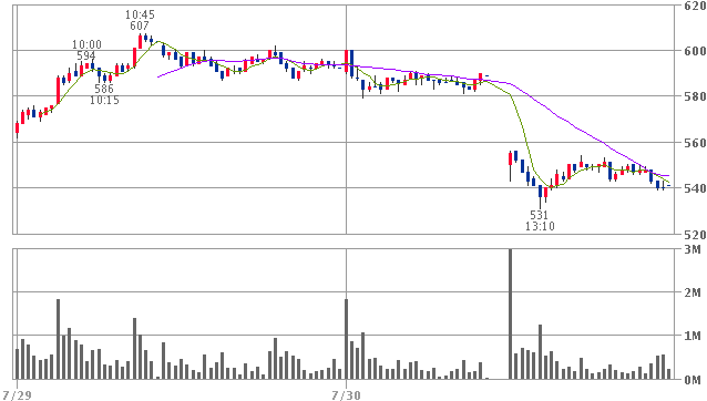 でも、LCさえきちんとしておけばなんとかなるだろうと思い、585円でエントリーした。LC574円、目標は始値600円を意識した手前598円にセット。だが相変わらず585円の攻防が続き、前場も終わろうとしていたので、切ろうかどおうしようか迷った。というのは週末であり月末であるので、持ち越したくなかったからだ。