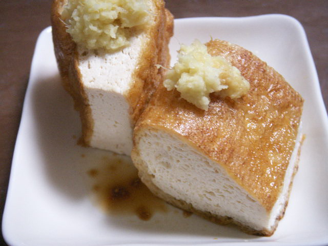 こんやのおかずの1品は竹田の油揚げにおろしショウガを乗せてそのまま食べるという超シンプルおかず