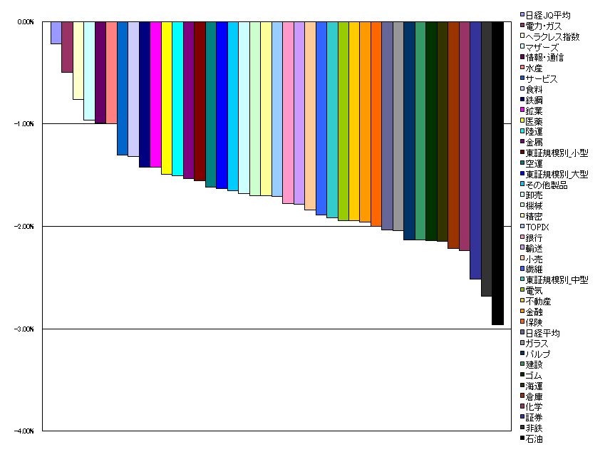 2.電力・ガス -0.49%(-0.63%)