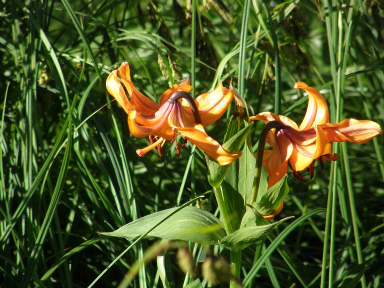 左がクルマユリ(ゆり科)、右がミソガワソウ(しそ科)