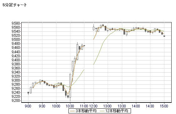 日経平均株価 9,516.56 +217.25 +2.34%