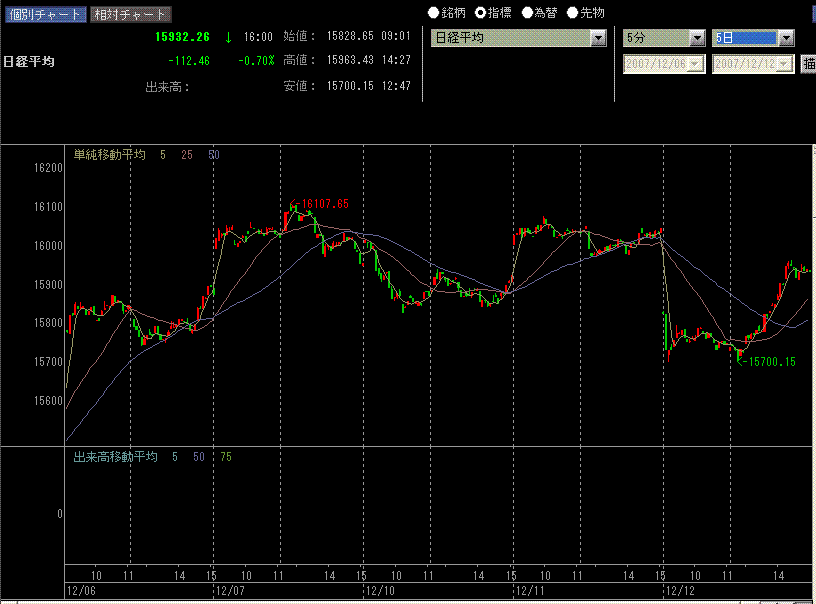 日中足で、日経平均の動きと比べて見ても判断できると思います。