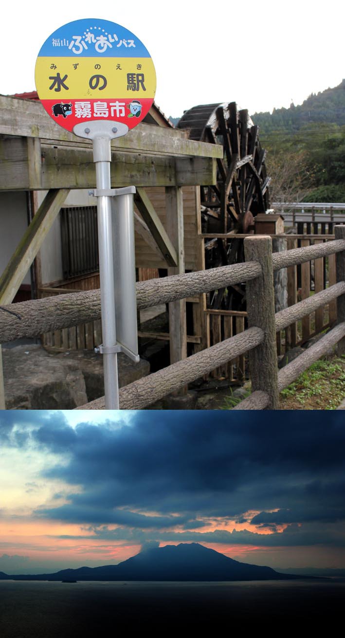 写真3は、咲いてたコスモス・ねむの木の花と帰りに撮った夕闇に隠れそうになる桜島