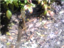 マユタテアカネ名古屋城の近辺に多いです。何故か赤くない。土色をしています。アカトンボも猛暑で色が乗らないのでしょう。 花から色をもらいましょう。