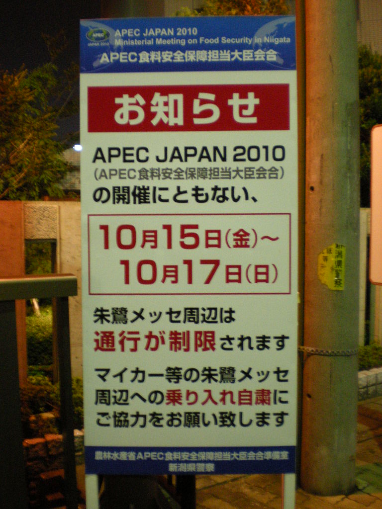 会場周辺の道路には警察の検問所が設けられ、新潟県警察本部では、会合の期間中、最大1400人態勢で