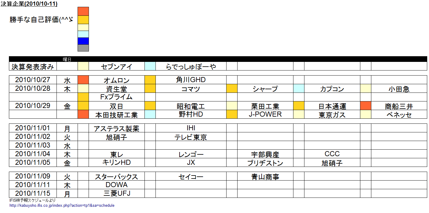 2010/11/05(金曜)日銀金融政策決定会合(5日~発表)