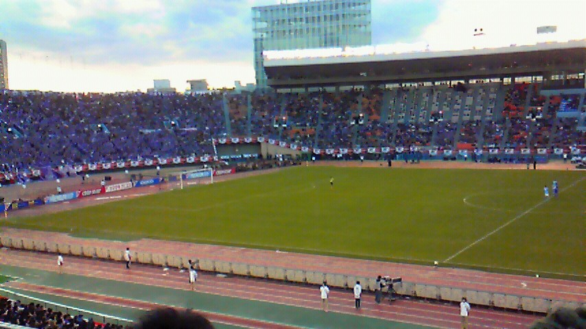 でも、国立競技場は、席の所の歩く場所はとても狭くて、転びそう・・・・