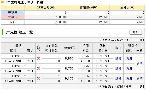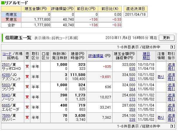 2010/11/04 寄り付きで2銘柄仕掛けました。