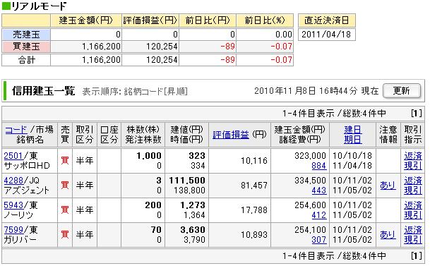 本日の手仕舞い。