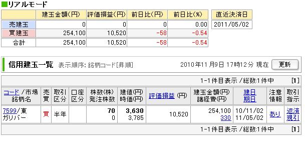 日経平均が直近で若干高くなってきたので、個別株は利益のあるものから手仕舞いです。