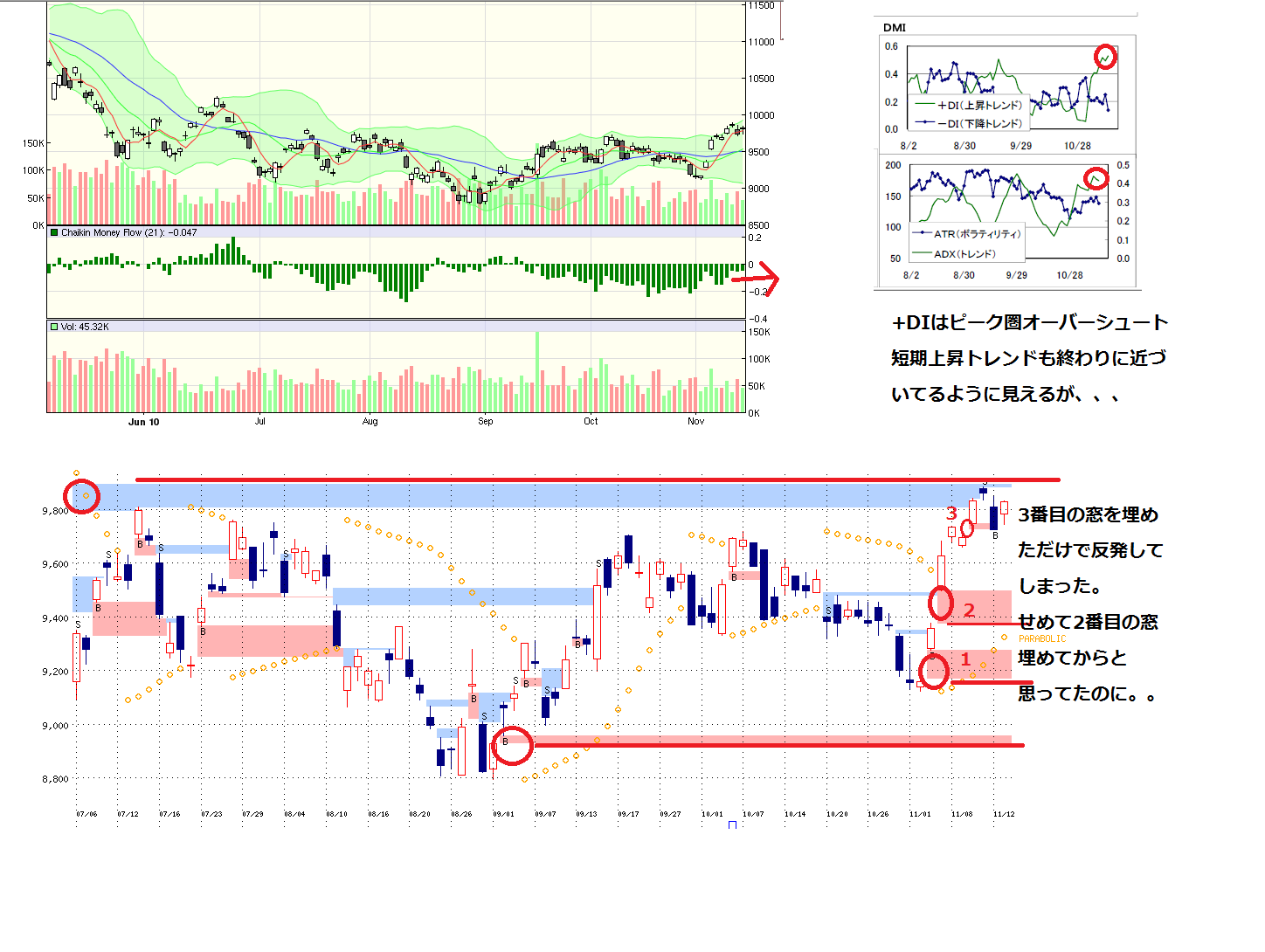 ・今日は金曜夕場安値の9640を再度見に行く事を期待してたのですが、
