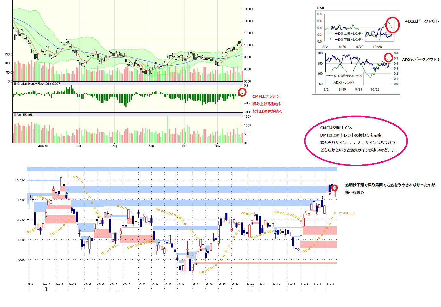 ・レンジ相場継続と考えるので、突っ込み買い、吹きね売り、の逆張り手法を継続。