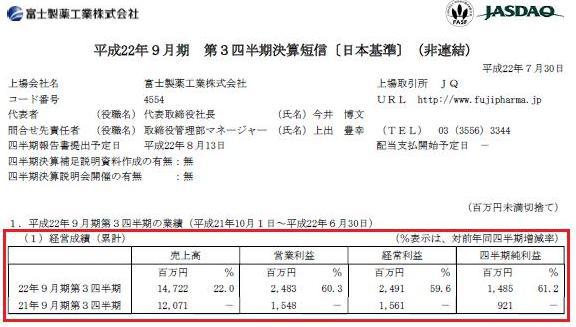 具体的には決算短信の1ページ目に記載されている