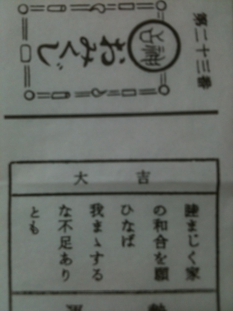 ちぃ、ほぼ毎年初詣の時には「第24番」の大吉神籤が当たってしまうんです・・・