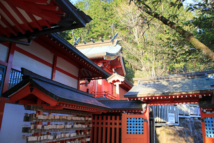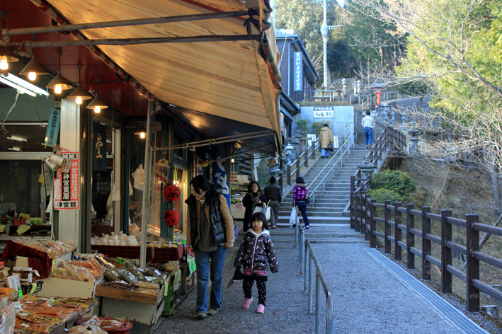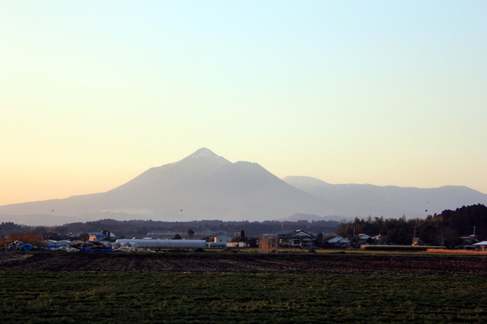 写真は閑散とした参道とお社、そして帰りに見えてた霧島連山です。