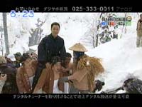 地元の衆にかつがれ、やってきたお婿さん。 5日の十日町市・松之山温泉では、 積雪が2メートル20センチ