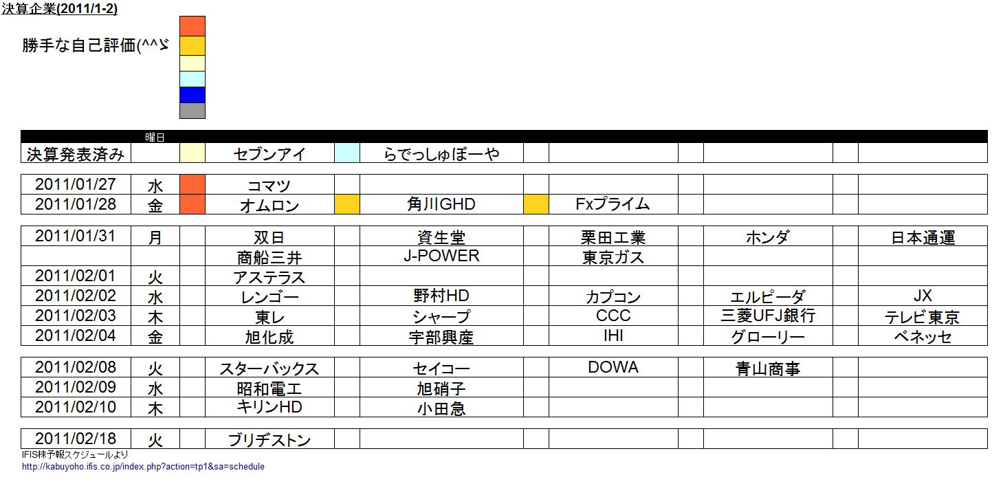 2011/01/31(月曜) NZ市場休場,台湾市場休場(春節~7日)