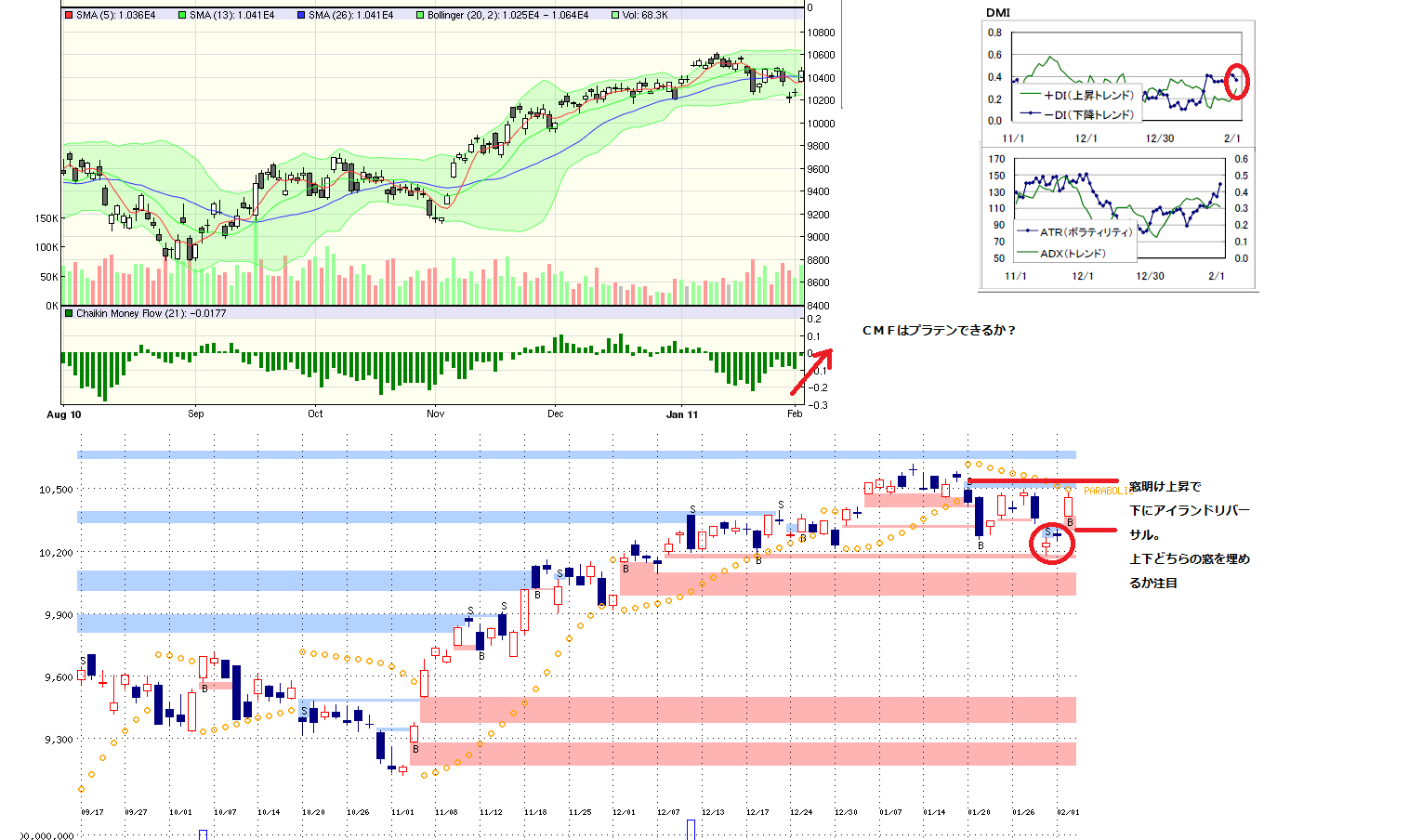 日足と分足サインがばらばらなら見送り、もしくは、分足で短期トレードに入る場合がある(たとえば、日脚が売りサインで、分足が買いサインのときは、短期で買い)