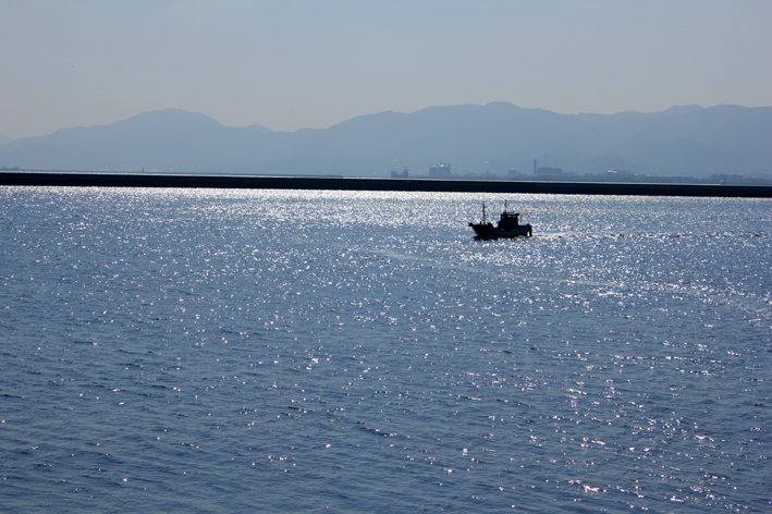 岸辺で漁に出て行く船を見ていると・・・何となく安心します。