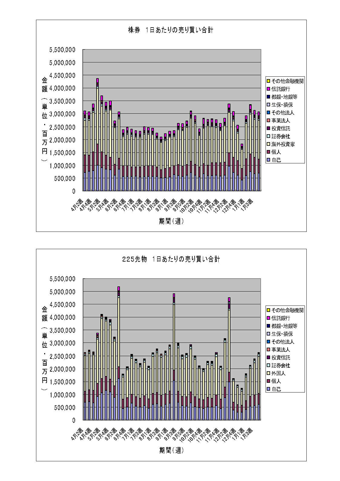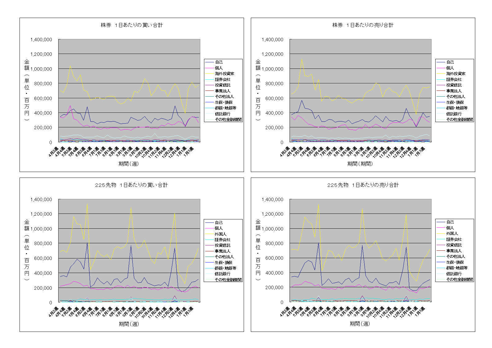 株券の売買金額は少し減りましたが、海外投資家の分は増えています。