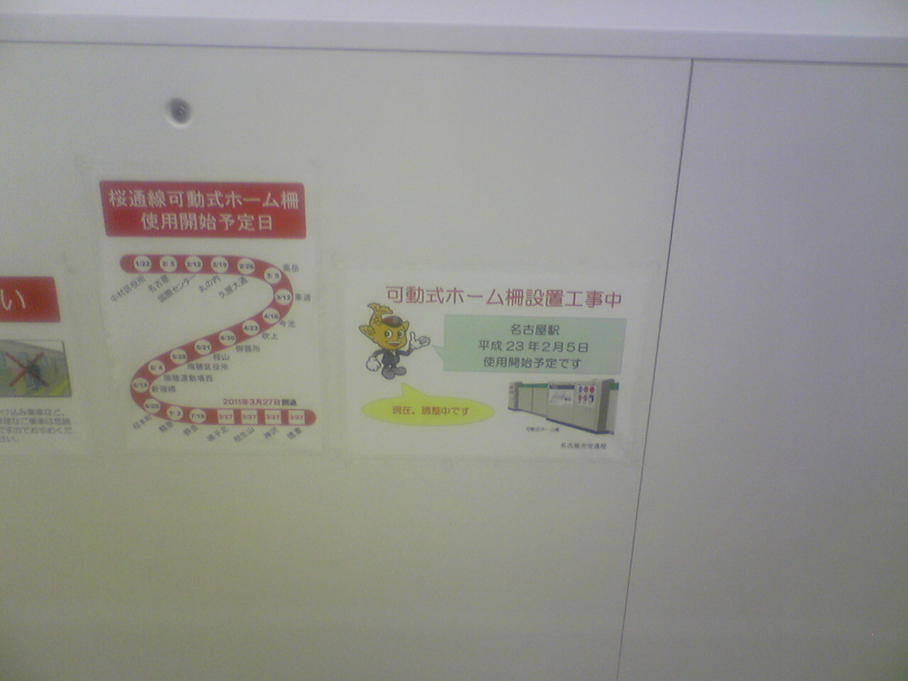 名古屋市営地下鉄でも落下防止柵が運用が始まる。名古屋駅の桜通線は落下事故のあった箇所です。その現場に立つ柵です。ご冥福をお祈りいたします。