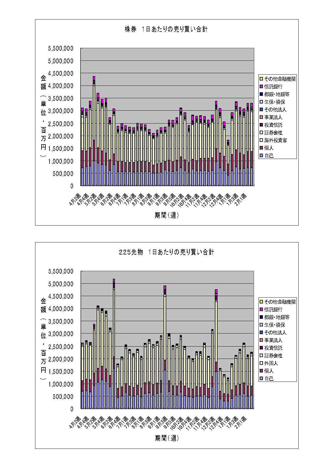 株券の売買金額はいい感じで水準を保っています。先物の売買金額はやや戻しました。