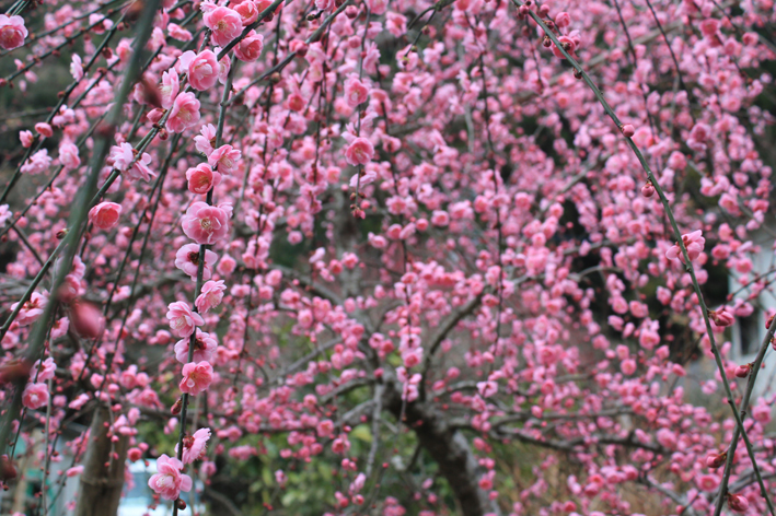 立派な枝垂れ梅は50年以上たった立派な梅の木です。