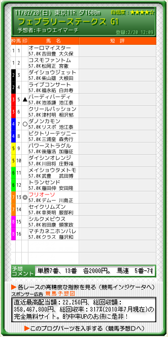東京11R フェブラリーS